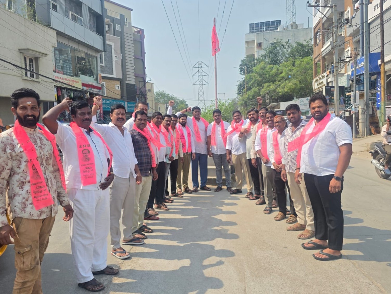 ఈ రోజు బిఆర్ఎస్ పార్టీ 26వ ఆవిర్భావ దినోత్సవం సందర్భంగా కూకట్ పల్లి డివిజన్ ప్రకాష్ నగర్ జెండా ఆవిష్కరణ చేసిన టిఆర్ఎస్ పార్టీ డివిజన్ ప్రధాన కార్యదర్శి చేగురి ప్రభాకర్ కూకట్ పల్లి వ్యవసాయ మార్కెట్ కమిటీ మాజీ డైరెక్టర్ బొట్టు విష్ణు ఈ కార్యక్రమంలో బి ఆర్ ఎస్ పార్టీ యువజన నాయకులు నైనేని అభిలాష్ రావు, బంతుల చైతన్య, ఉదిగి మహేష్, సిరిగాని పవన్, నూనె రాజు, శ్రీధర్ రెడ్డి, కురుమూర్తి, తదితరులు పాల్గొన్నారు