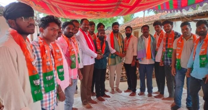 సూర్య ఉదయం,భీంపూర్: మండలంలోని అందర్ బంద్,కరంజి(టీ) గ్రామాలకు చెందిన బీఆర్ఎస్, కాంగ్రెస్ పార్టీలకు చెందిన యువకులు ఆదివారం జిల్లా అధ్యక్షులు పతాంగే బ్రహ్మానంద్ సమక్షంలో బీజేపీ పార్టీలో చేరారు. ఆదివారం భీంపూర్ మండలం వాడేగావ్ గ్రామంలో బీజేపీ కార్యకర్తల సమావేశం నిర్వహించారు. ఈ సందర్భంగా బీజేపీ పార్టీ జిల్లా అధ్యక్షులు మాట్లాడుతూ ఎన్నికలు ఎప్పుడు వచ్చినా కార్యకర్తలు సిద్ధంగా ఉండాలని సూచించారు. భీంపూర్ మండల జడ్పిటిసి,ఎంపీటీసీ అభ్యర్థుల పేర్లు జిల్లా అధ్యక్షులకు అందించడం జరిగిందనీ మండల అధ్యక్షుడు అంకం అశోక్ తెలిపారు. ఈ కార్యక్రమంలో రాష్ట్ర కౌన్సిల్ మెంబర్ తాటిపల్లి రాజు, నాయకులు గుర్ల నారాయణ, వెంకటేష్, రాకేష్, రమేష్, గంగన్న, భోజన్న, సంజీవ్, రమేష్ తదితరులు పాల్గొన్నారు.